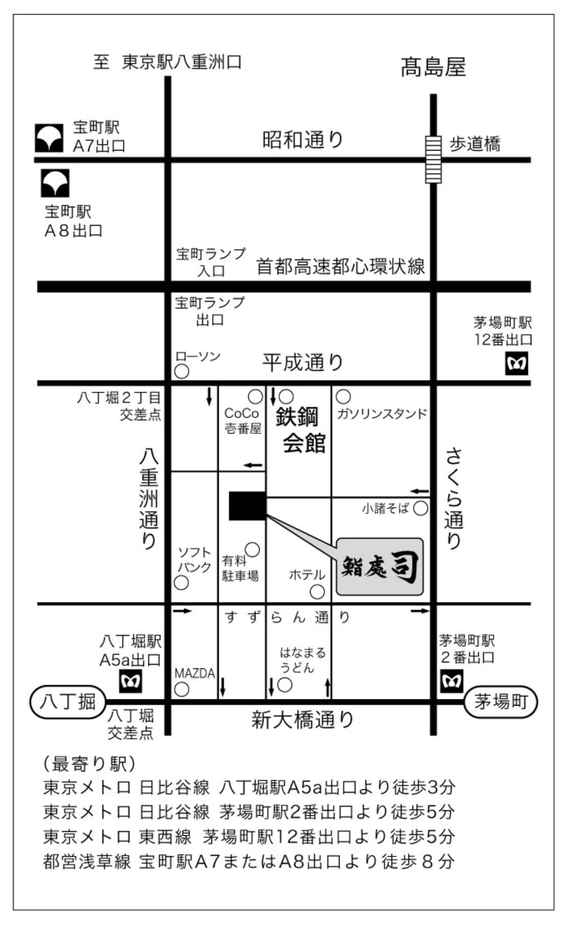都営浅草線 日本橋駅下車 地下道経由 茅場町駅12番出口より徒歩5分
